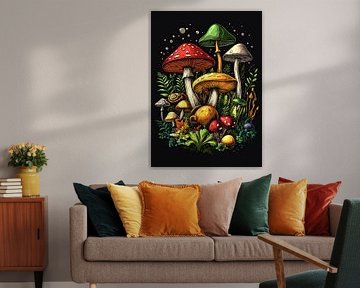 Créature sombre aux yeux brillants et champignons