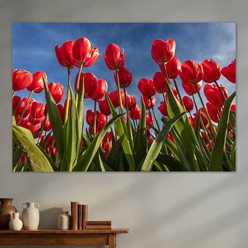 Les tulipes hollandaises s'élancent vers le ciel bleu