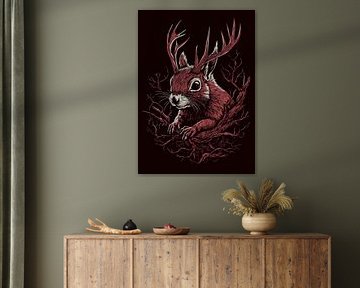 Écureuil mystique avec bois de cerf dans une atmosphère sombre
