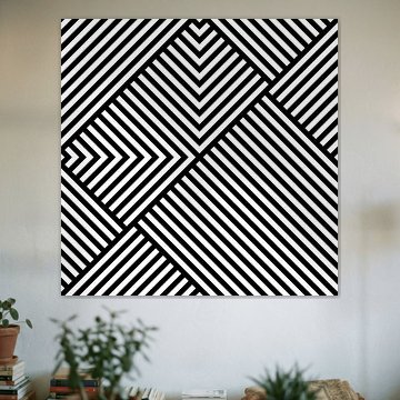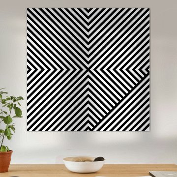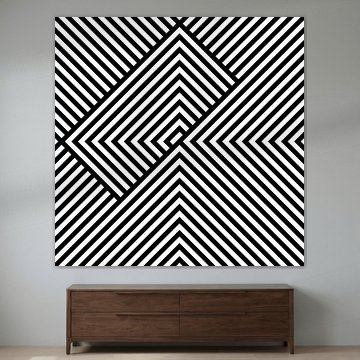 Basismuster sind Winkel oder L-Förmige Streifen die sich teilweise gegenseitig überlagern. Also nur L's, sonst nichts. Ausschnitt aus einer 2x2 Matrix, zusätzliche Rotation um 45 Grad.