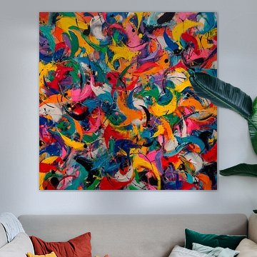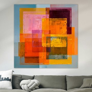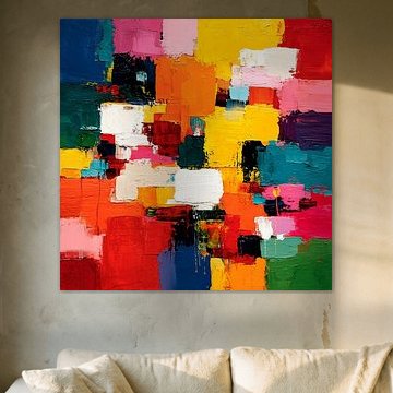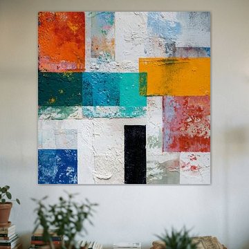 Collection d'œuvres d'art abstraites avec diverses structures de peinture exécutées dans un format carré dynamique.