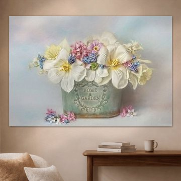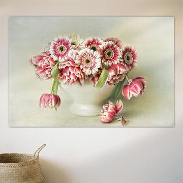 Vous voulez une touche de romantisme dans votre vie quotidienne ? Vous réussirez avec l'art mural de Lizzy Pe. Près de Brême, des natures mortes en forme de fleur, féeriques et ludiques, sont créées. Un charme particulier, nostalgique dans la tendance de l'époque actuelle, entoure ces peintures de fleurs. L'examen de la composition, de la couleur et de la forme révèle leur symbolisme poétique.