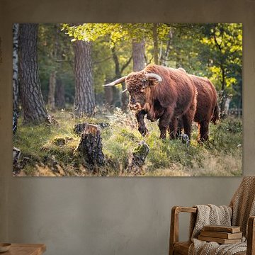 Schotse Hooglanders die gefotografeerd zijn in de Schinveldse bossen.