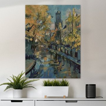 Dorps en stadsgezichten in olieverf, acryl en potlood.