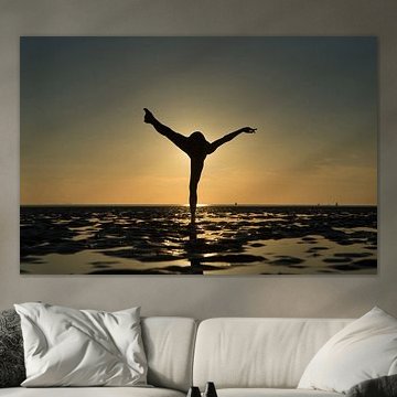 Nu Artistique dans la mer des Wadden sur une jambe dans une hélice de pose