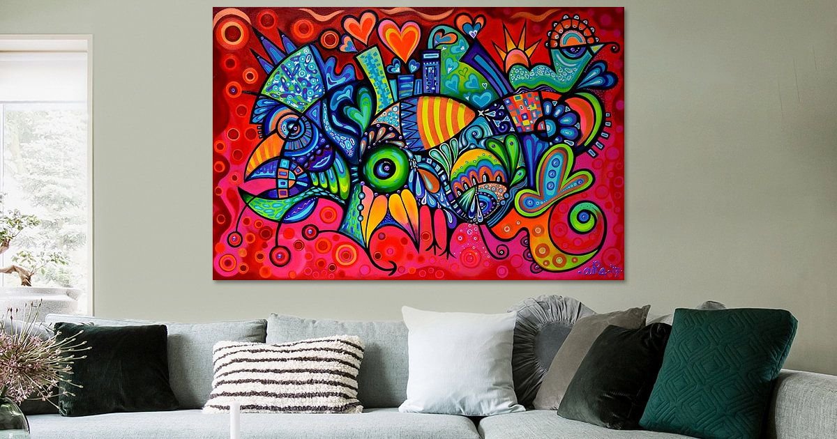 Annet Raben (Groningen 1960) maakt grote, kleurrijke doeken in een zwierige, abstract figuratieve stijl. Haar doeken zijn ware blikvangers, opvallend en vrolijk in iedere ruimte, woonkamer, wachtkamer of bedrijfskantine. Za laat zich inspireren door Kandinsky, Picasso, , Jorn, Briels, Milhazes en vele andere kleurrijke kunstenaars. Haar eigen vormentaal wordt toegepast door stevige lijnen, punten en dotten te plaatsen en dekkende en transparante kleuren te gebruiken. Alhoewel de doeken abstract ogen zie je, als je beter kijkt, allerlei figuren ontstaan. Vreemde vogels, vissenkoppen, ogen, rare beestjes, bloemen, gebouwen, spoorlijnen en confetti. Een fantasierijk geheel, een prikkeling der zinnen.