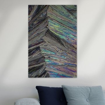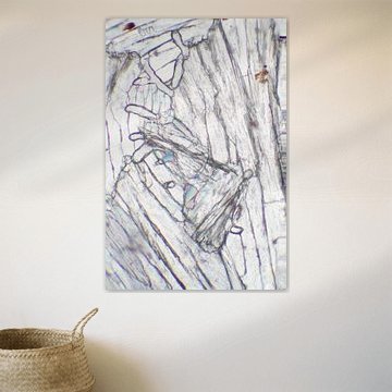 Depuis des années, Jelte prend des photos au microscope : produits chimiques cristallisés, bois coupé très fin et pierres (précieuses) coupées très fin. Grâce à la polarisation, entre autres méthodes, il peut rendre les belles structures encore plus visibles. La microphotographie révèle un monde que nous ne pouvons pas percevoir à l'œil nu. Lorsqu'on regarde les belles structures, il est toujours difficile de choisir la plus belle.