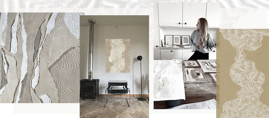 Mon utilisation des matériaux est délibérément stratifiée. Je travaille avec du papier, de la peinture, des techniques de gaufrage et de relief qui rendent la texture tangible. Cette combinaison de calme visuel et de tension sous-cutanée constitue le cœur de mon langage visuel.