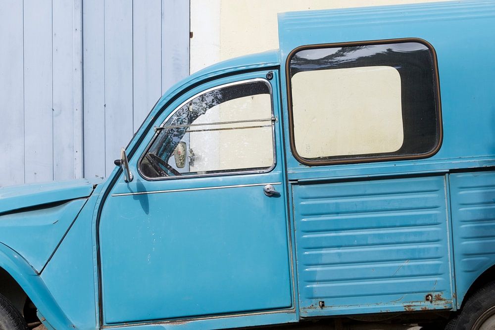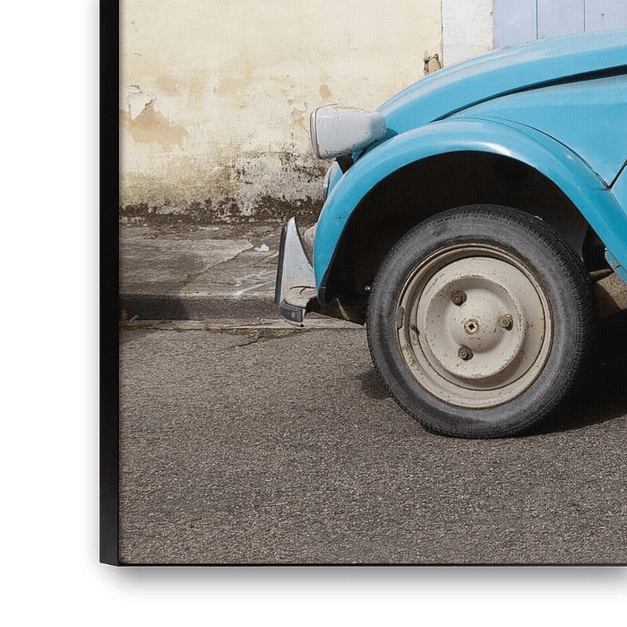 Achetez cette photo 2CV bleu clair dans une rue française pittoresque par Pieter Wolthoorn sur toile, aluminium, ArtFrame ou photographie (encadrée), impression d'art en haute qualité et tout format.