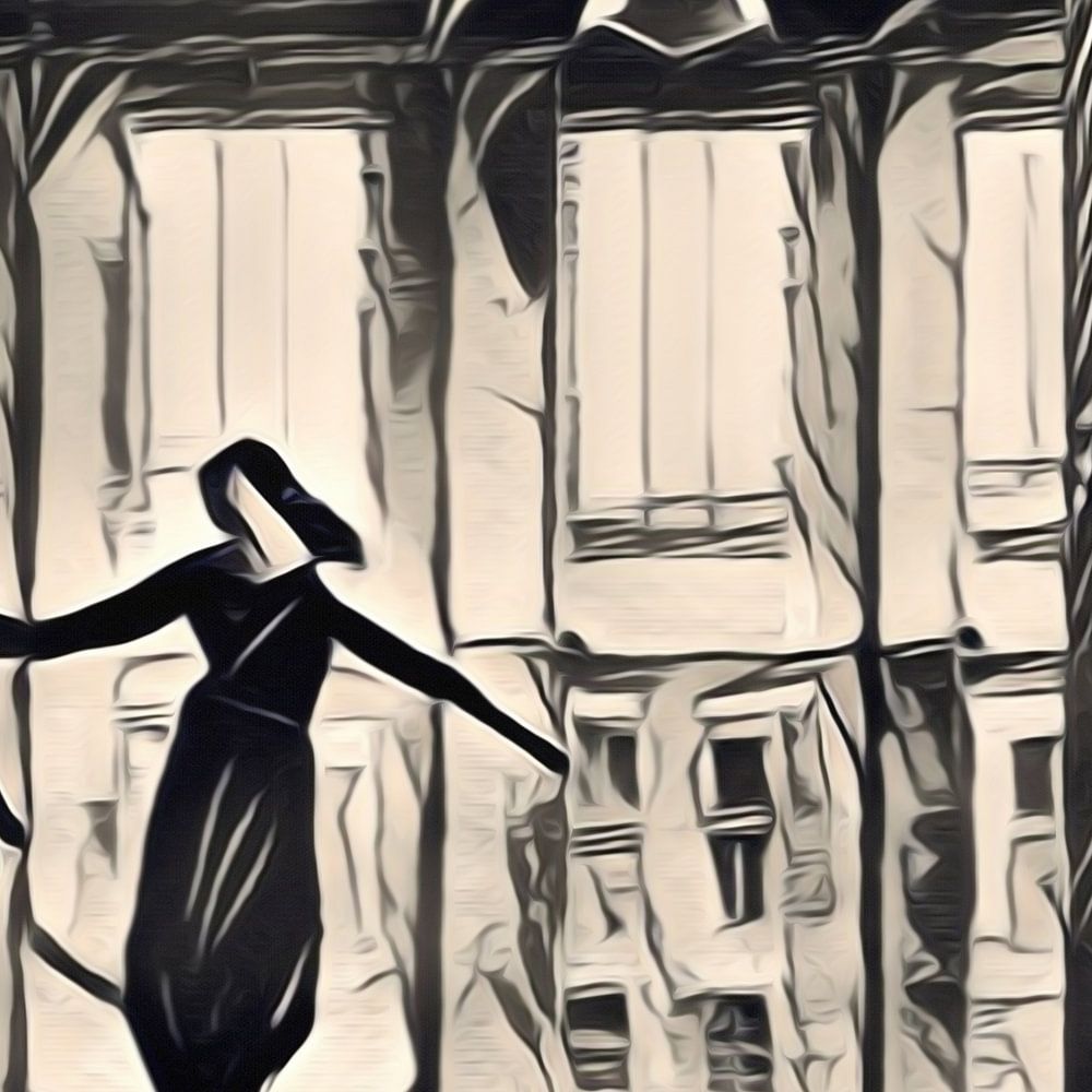 Partie d'une œuvre en quatre parties. Cette œuvre audacieuse est réalisée dans une teinte beige avec du gris foncé à noir. L'œuvre est de nature abstraite. Le thème du quadriptyque est "la danse dans l'usine". Si vous regardez attentivement, vous pouvez voir les vieilles lampes de l'usine suspendues au plafond. Ce couple de danseurs dispose de tout l'espace dans ce hall d'usine abandonné et difficile.