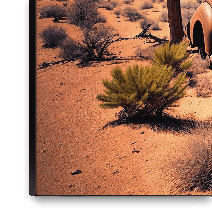 Abandonnée dans le désert de l'Arizona : la voiture rouillée" - Cette illustration montre une vieille voiture rouillée abandonnée dans le désert de l'Arizona. La voiture est couverte de rouille et présente une patine du temps, suggérant qu'elle a été abandonnée pendant longtemps. L'environnement désertique accentue le sentiment de…