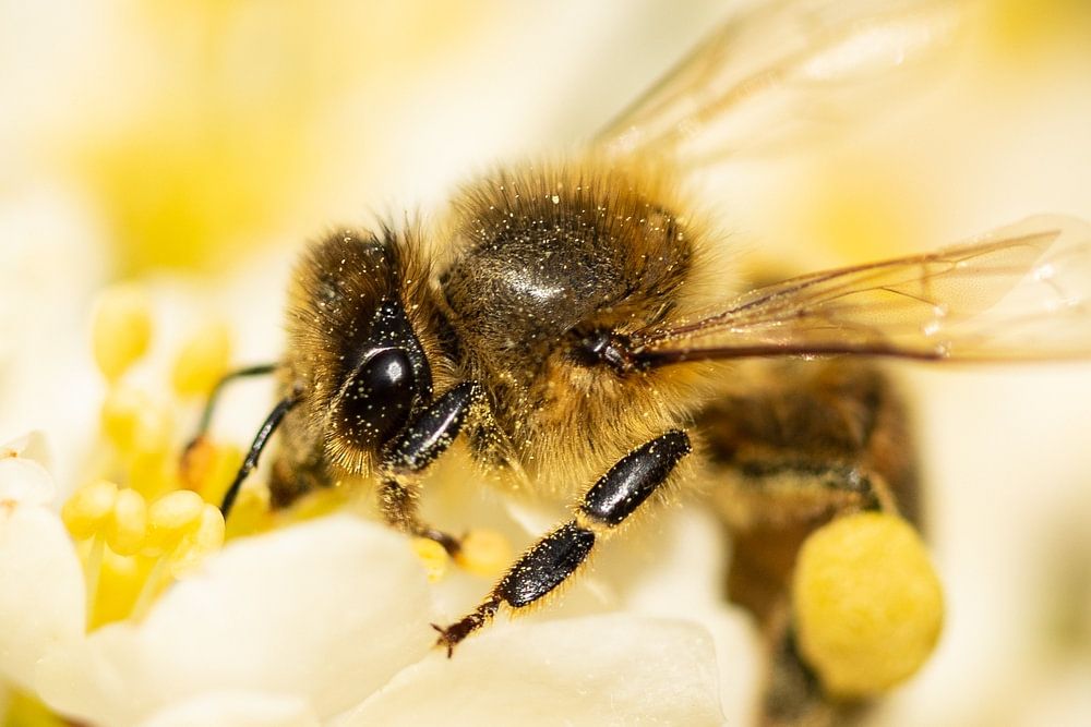 Dès que le printemps arrive et que les fleurs apparaissent sur les arbres, les abeilles reviennent. Du petit matin jusqu'à tard dans la nuit, elles s'affairent à la récolte du pollen. Cette abeille a déjà effectué de nombreuses heures de travail, mais elle continuera encore pendant un certain temps.