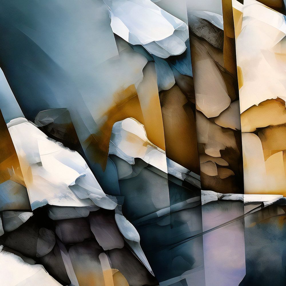Peinture abstraite dans des tons froids de terre avec une couleur d'accentuation violette et avec un thème d'hiver.