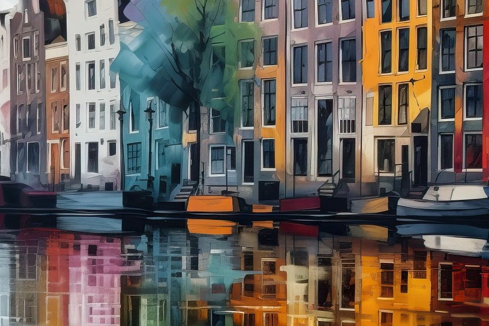Achetez cette œuvre d'art moderne Abstract schilderij Amsterdam par La collection ARTEO sur toile, aluminium, ArtFrame ou photographie (encadrée), impression d'art en haute qualité et tout format.
