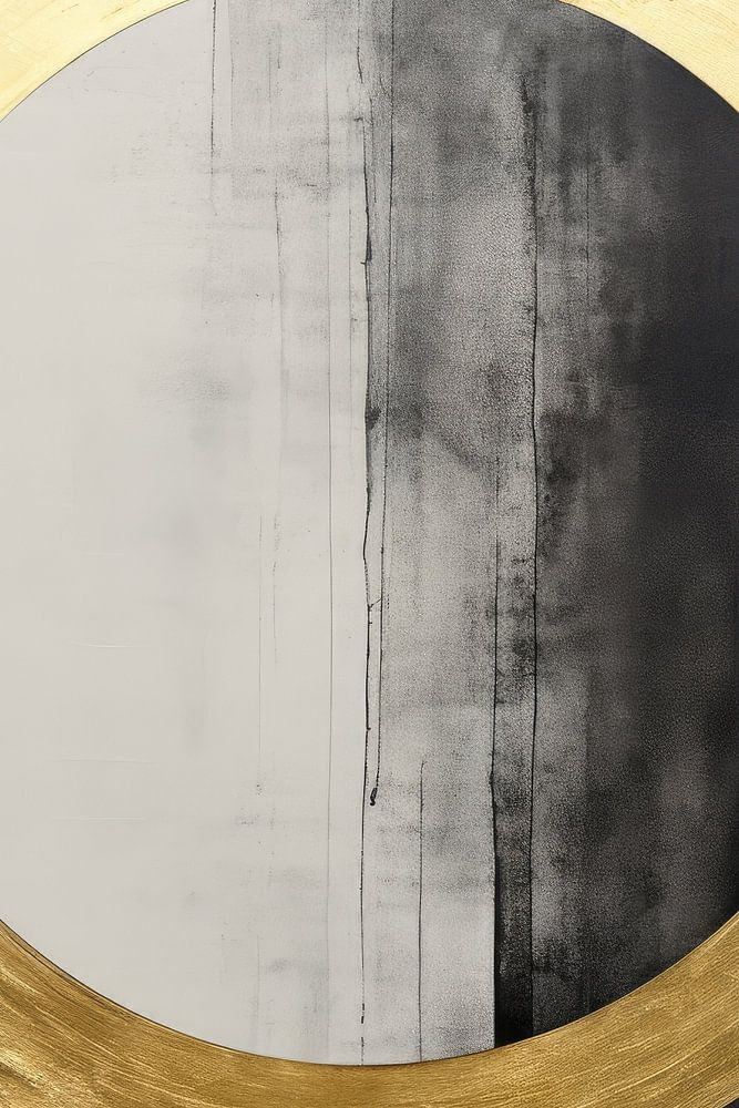 Dans un tableau enchanteur en noir et blanc et or, la toile révèle un monde mystique imprégné de l'art de la calligraphie. Un cercle doré, tel un coucher de soleil oriental, traverse la toile, formé par des coups de pinceau habiles qui capturent l'essence de la calligraphie asiatique. Chaque coup de pinceau est chargé de sens, une histoire racontée en lignes d'or, dansant au rythme d'une harmonie raffinée. Ce chef-d'œuvre abstrait invite à l'introspection, le spectateur découvrant la profondeur du symbolisme dans les lignes et les courbes fluides. La combinaison du noir et du blanc forme un contraste parfait, tandis que l'or scintille comme un trésor à découvrir. Cette création ne s'adresse pas seulement aux sens, elle murmure aussi des histoires de sagesse ancienne et d'élégance intemporelle. C'est une célébration de la calligraphie en tant que forme d'art qui touche l'âme et enchante l'imagination.