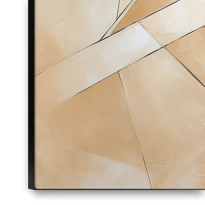 Warm Abstraction | Abstract Art - Cette œuvre abstraite se caractérise par ses formes géométriques et une palette chaude de tons beiges et bruns, dégageant une certaine élégance et tranquillité. L'utilisation de la lumière et de l'ombre dans la composition crée une profondeur dynamique.