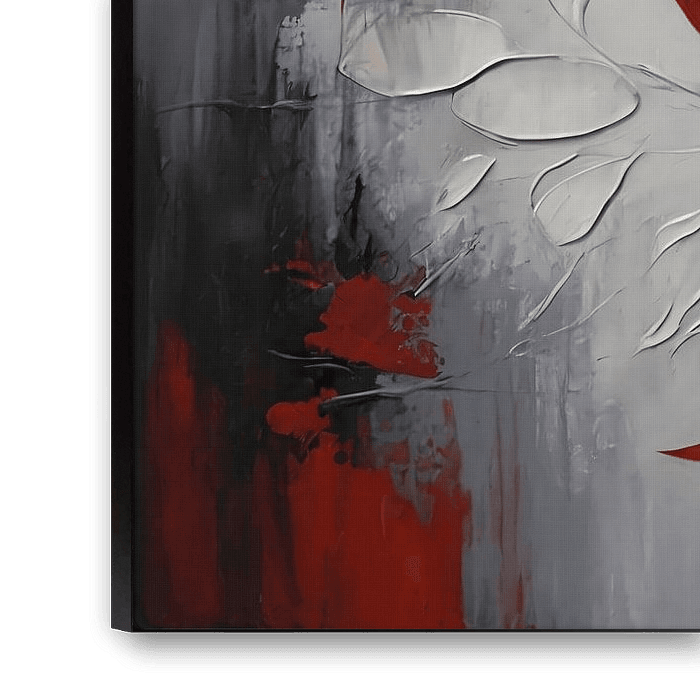 Découvrez la beauté vibrante de cette interprétation abstraite d'une fleur en pleine floraison. L'interaction entre le rouge ardent et les teintes blanches sereines apporte une dynamique énergique mais équilibrée à tout espace. Les coups de pinceau audacieux et les tons argentés subtils ajoutent une touche moderne, tandis que le contraste avec l'arrière-plan minimaliste capte et retient l'attention. Cette œuvre d'art est un véritable accroche-regard qui non seulement s'impose dans votre salon ou votre bureau, mais constitue également une source d'inspiration et de contemplation. Laissez-vous emporter par la beauté abstraite qui rend hommage au monde naturel et à ses merveilles.