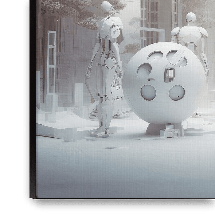 Achetez cette œuvre d'art abstraite Abstractions futuristes : Un voyage dans les villes du futur par Eva Lee sur toile, aluminium, ArtFrame ou photographie (encadrée), impression d'art en haute qualité et tout format.