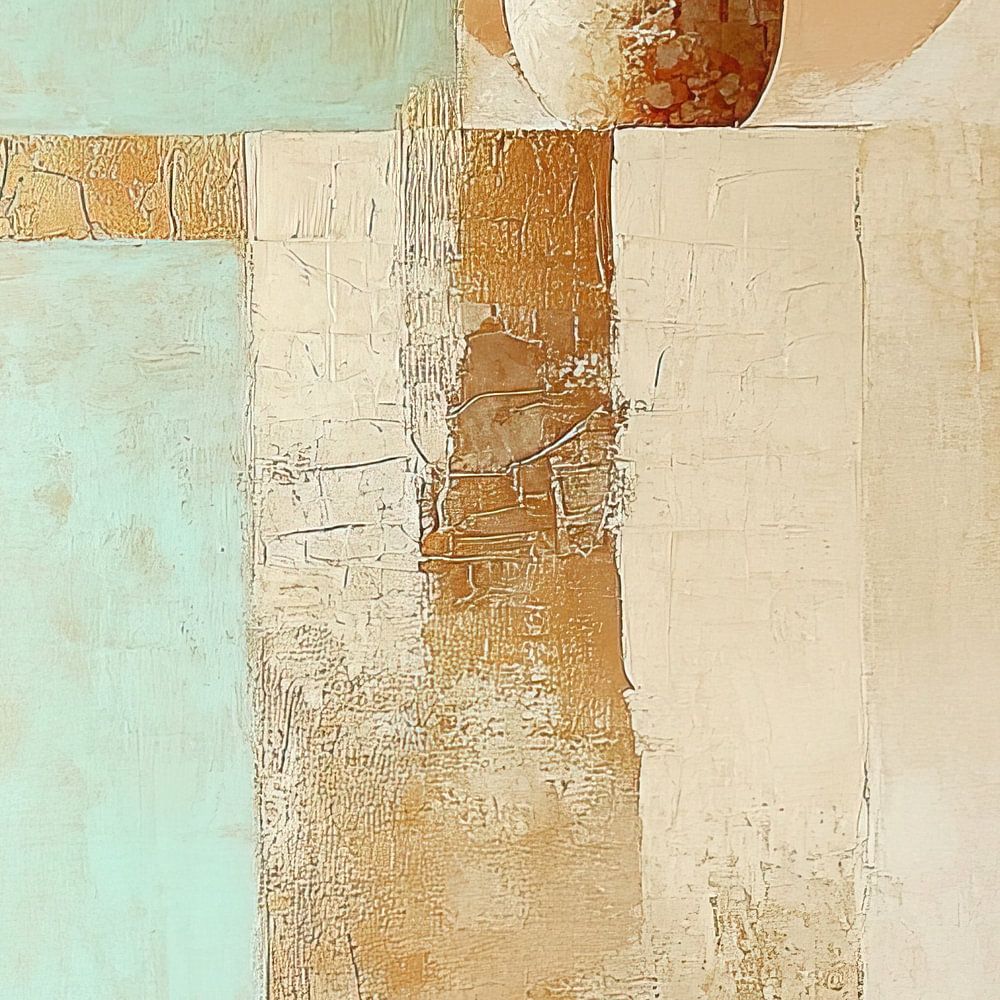 Abstrait - Nuances de solitude - Cette peinture abstraite présente des formes géométriques et un équilibre subtil entre les tons beige, bleu et orange.