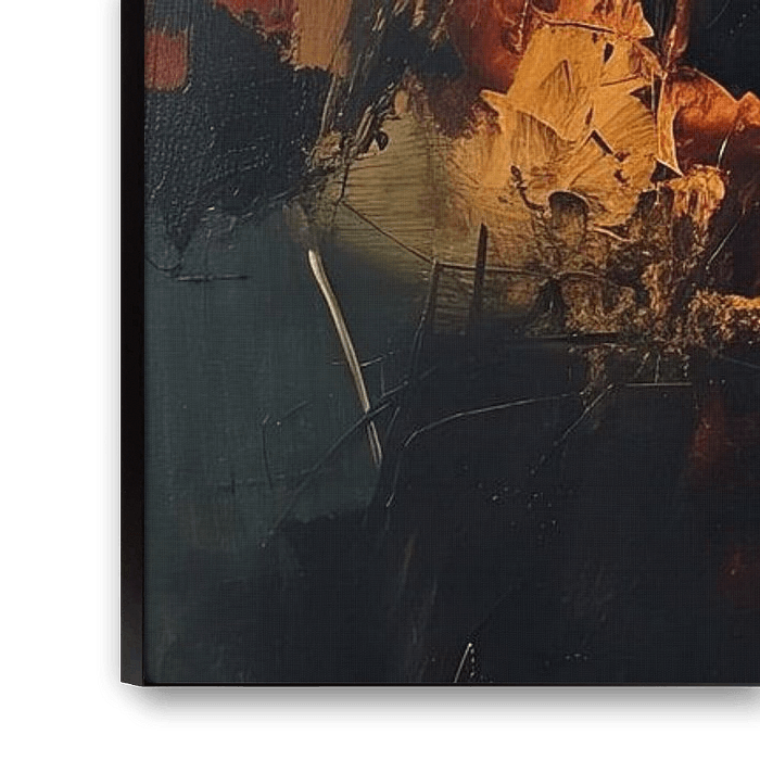 Abstrait Tons de terre | Tons de terre - Cette œuvre d'art abstraite est une composition vibrante de formes organiques et géométriques, dominée par des tons de terre animés par des accents de rouge et d'orange profonds. L'utilisation de la texture et la construction en couches ajoutent de la profondeur et du dynamisme, tandis que les lignes horizontales offrent un équilibre apaisant à l'ensemble.