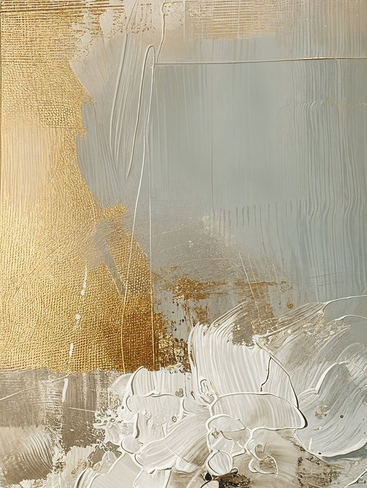 Abstrait moderne dans le style wabi-sabi avec des accents dorés. Une belle œuvre abstraite qui vous fait regarder plus longtemps. Choisissez la taille et le matériau de cette œuvre et faites-en un véritable accroche-regard pour votre intérieur.