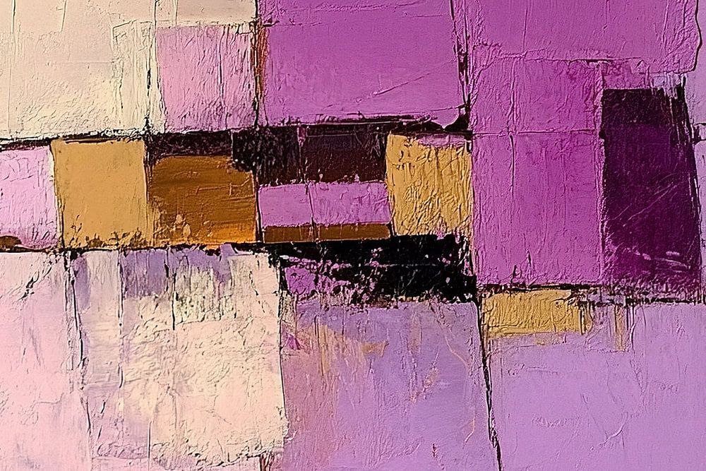 Détails : abstrait, art moderne, géométrique, minimaliste, violet, or, peinture, toile, galerie d'art, décoration intérieure