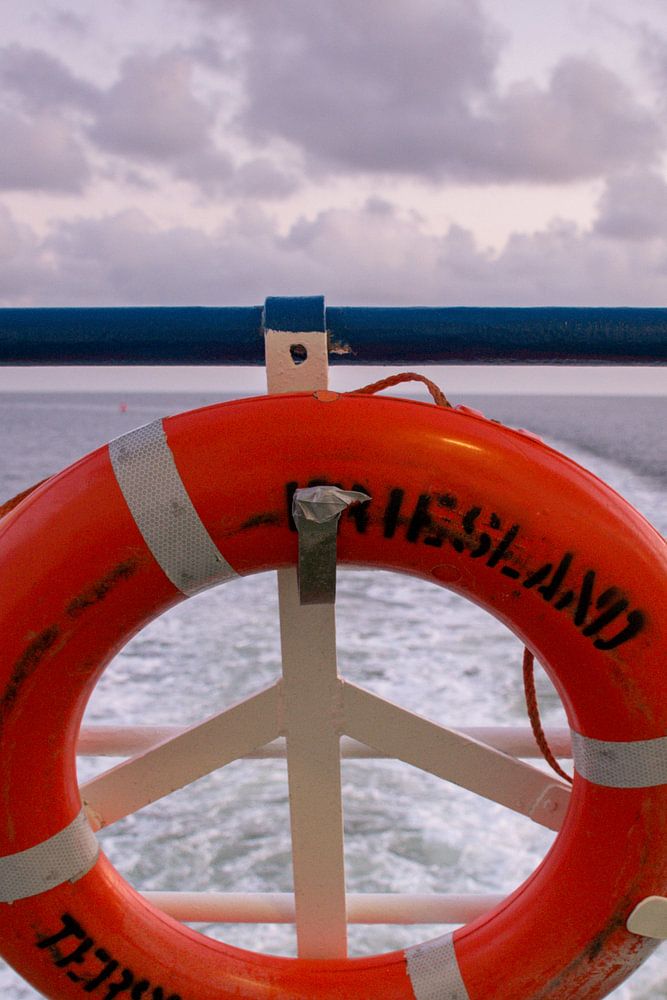 Drenkelingen boei op het achterdek van de veerboot "Friesland"