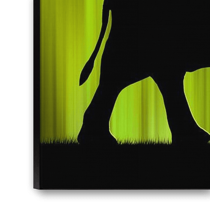 Vert magique et lumineux. Éléphant, le lion, la girafe et le zèbre en silhouette devant une jungle mystique.