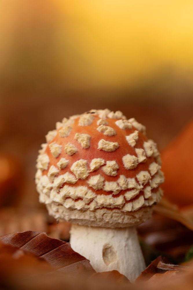 L'automne apporte toujours de si belles couleurs à la forêt. Ce champignon rouge et blanc se trouvait au milieu du chemin parmi les feuilles. La photo a été prise dans les bois près d'Elp, Drenthe (Pays-Bas), le 29 octobre 2021.