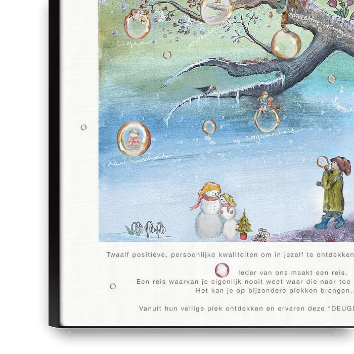 Douze vertus sont cachées sur ce poster. 12 qualités positives et personnelles à découvrir en soi, à emporter avec soi et à transmettre.