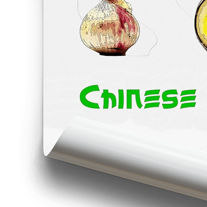 Poster représentant des bulbes d'ail chinois coupés en deux avec des pousses vertes