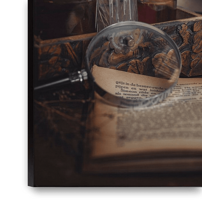 Une nature morte vintage composée de livres, de loupes, de boîtes et de bouteilles à l'ancienne. Une nature morte comme celle d'un alchimiste, d'un écrivain, d'un chercheur ou quelque chose de magique peut-être.
