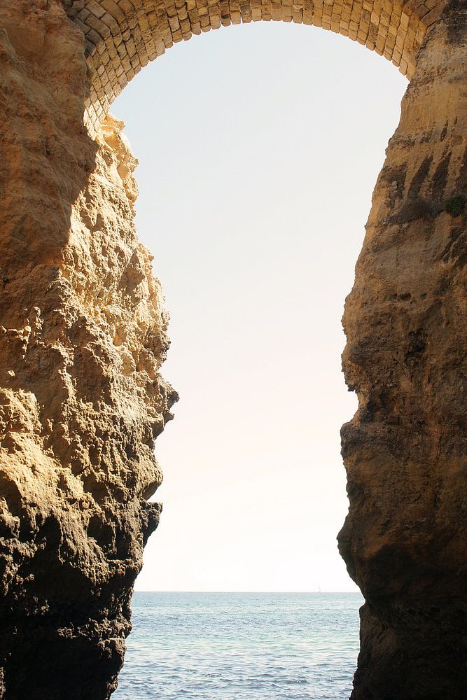 De rotsen van de Algarve in Portugal zijn wereldberoemd om de fantastische kleuren en de grilligheid van de rotsen die deels in het water staan. Dit bruggetje in Lagos is bovendien een mooi stukje vakwerk om van niks naar nergens te komen.