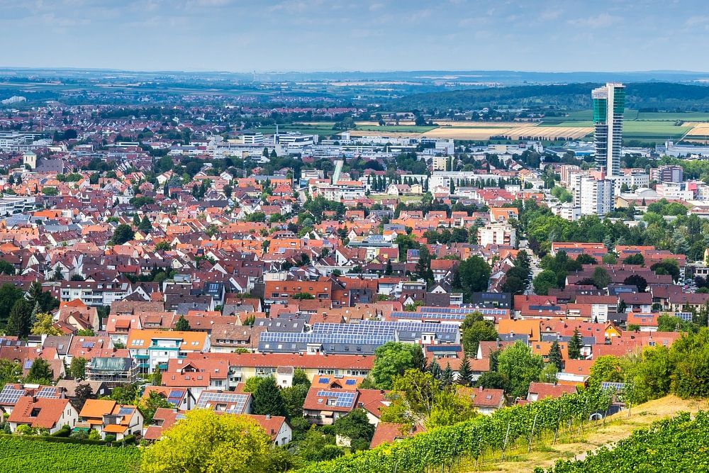 A propos de "Allemagne, Fellbach : maisons de la ville près de stuttgart vues du haut des vignobles"