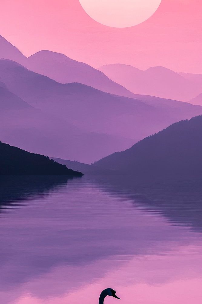 De doux tons pastel enveloppent la scène, tandis qu'un cygne majestueux glisse dans une eau calme. Le reflet crée une symbiose harmonieuse avec le soleil radieux qui embrasse le ciel. Ce tableau de rêve confère à la chambre à coucher une atmosphère paisible et favorise des nuits de rêve pleines de détente et d'inspiration.