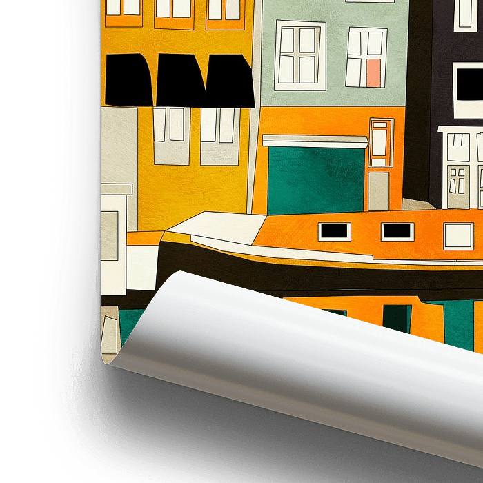 Une illustration libre et colorée du paysage urbain d'Amsterdam de la série "Europe diverse"