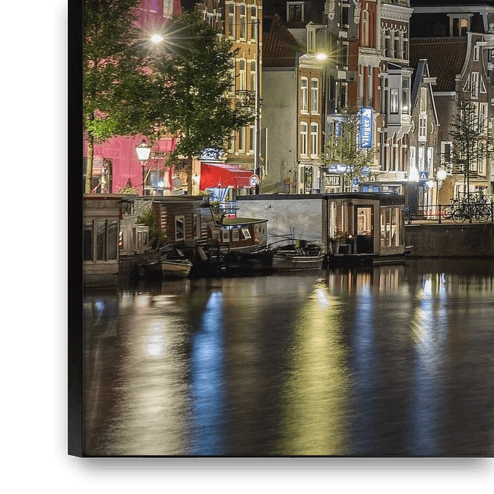 Dans le silence de la nuit, quand Amsterdam est toute seule pour un moment, je me suis promenée seule dans la ville. Pendant des heures, j'ai déambulé dans le centre-ville, le long des canaux et sur les places, alors que la ville se calmait lentement. Les bâtiments centenaires baignaient dans une lumière chaude, les reflets dansaient sur l'eau et chaque rue racontait sa propre histoire. Sans hâte, sans distraction - juste le rythme de la ville et les jeux d'ombre et de lumière.