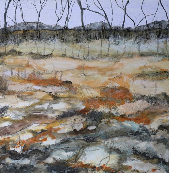 Des souvenirs de témoins du paysage brûlé à la suite des incendies d'Anakie ont inspiré cette œuvre. La terre brûlée, avec des débris de charbon de bois éparpillés dans les plaines du pays, couvre une vaste zone ravagée par les flammes, rendue en ombres, ocres et gris cendre. Un paysage lunaire, marqué par un sentiment de désolation.