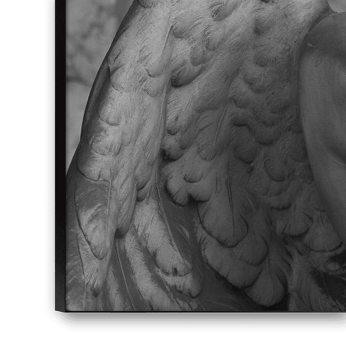 Le léger contrepoint, la courbe de son ventre, de son nombril et de ses seins et la douceur magnifiquement sculptée de ses bras confèrent à la sculpture une sensualité indéniable. Cet ange n'est pas un messager immatériel de Dieu et ne vous accompagne pas au Paradis. Il s'agit plutôt d'un témoin détaché qui observe avec attention la vie et la mort apparemment insignifiantes des gens.