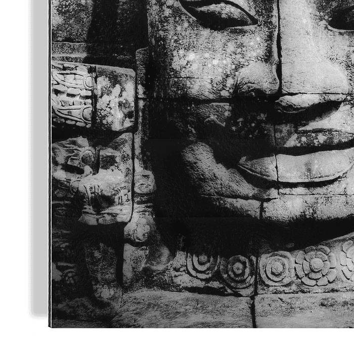 Gros plan sur l'un des nombreux visages de Bouddha du temple d'Angkor Thom, qui fait partie du très grand complexe de temples d'Angkor, dont Angkor est le temple le plus célèbre.