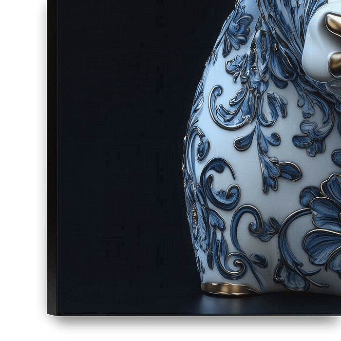 Deze kunstwerken zijn een adembenemende reis door de tijd, waar de delicate schoonheid van de natuur wordt gecombineerd met de weelderigheid en verfijning van de rococo-stijl, alles gecreëerd met de hulp van geavanceerde AI-technologie. Deze serie van porseleinen dieren is niet zomaar een ode aan de natuur, maar een luxe-interpretatie van dierlijke elegantie, gekleed in de speelse, gedetailleerde vormen die de rococo kenmerkt. De rococo-stijl, bekend om zijn weelderige ornamentatie, zachte lijnen en gracieuze vormen, komt prachtig tot leven in deze dieren, die met onmiskenbare finesse zijn vervaardigd. Denk bijvoorbeeld aan een hert met sierlijke gewei, dat niet alleen zijn majestueuze verschijning tentoonstelt, maar tegelijkertijd de lichtvoetige en gedraaide lijnen van de rococo-ornamenten in zijn hoornstructuur weerspiegelt. De AI speelt een essentiële rol in dit creatieve proces, waarbij het kunstwerk niet alleen de uiterlijke vorm van de dieren vastlegt, maar ook de geest van de rococo-technieken erin verweeft. Via algoritmes wordt de dynamiek van beweging in het dier met de sierlijkheid van rococo-lijnen en -vormen gecombineerd, waardoor een subtiel spel van klassieke en innovatieve technieken ontstaat. Het resultaat is een serie sculpturen die het verleden omarmen, terwijl ze tegelijkertijd een moderne draai krijgen door de precisie van kunstmatige intelligentie. Het gebruik van porselein als materiaal voegt een extra dimensie van verfijning toe. Het witte porselein vangt de helderheid en puurheid van de natuur, terwijl het tegelijkertijd de zachte elegantie van rococo meebrengt, die het materiaal licht en bijna etherisch maakt. Deze delicate porseleinen dieren krijgen een bijna magische uitstraling, alsof ze zelf uit een ander tijdperk zijn ontsnapt. De subtiele blauwe tinten in de ornamenten lijken de lucht van een lenteochtend of de verfijnde patronen van antieke porselein sets uit de rococo-periode te echoën, terwijl de gouden accenten de weelderigheid en luxe benadrukken die zo kenmerkend zijn voor de rococo-esthetiek. Het goud brengt een gevoel van kostbaarheid en tijdloze schoonheid, dat elk kunstwerk verheft naar een niveau van verfijning en pracht. Deze kunstwerken zijn niet alleen een visuele ervaring, maar een tijdreis waarin we het verleden omarmen terwijl we de grenzen van kunst en technologie verkennen. Ze spreken tot de verbeelding en roepen een gevoel van bewondering op voor de manier waarop natuur, geschiedenis en moderne creatie samenkomen in een harmonie van verfijning en innovativiteit.
