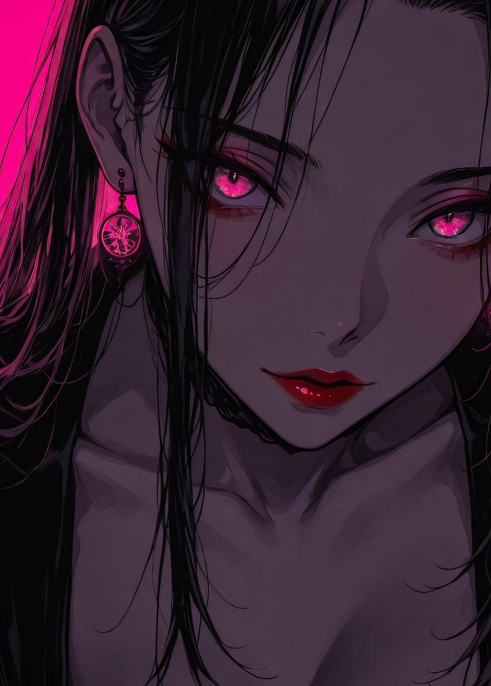 Eclipse Empress incarne l'ascension du lièvre au-delà de la rébellion et de la guerre - elle n'est plus un soldat ou un assassin, mais une souveraine de la nuit néon. Baignée par la lueur d'une fausse lune, son regard désarme et son silence commande. Chaque boucle d'oreille est gravée du sigle du pouvoir, un sceau qui lie sa volonté au monde souterrain de la ville. Elle ne chasse pas le chaos, c'est le chaos qui se plie à elle. Le mythe de la Neon Hare devient inébranlable, éternel, couronné non par le sang, mais par la dévotion et la peur. Cyberpunk queen anime, Neon goddess aesthetic, Cyberpunk empress anime girl, Glowing pink eyes femme fatale, Dark cyberpunk queen art, Neon eclipse aesthetic anime, Gothic cyberpunk anime beauty, Dark goddess cyberpunk anime, Anime seductive ruler aesthetic, Futuristic neon goddess