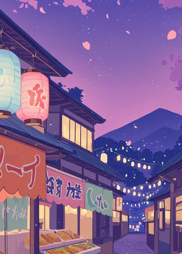Des lanternes lumineuses bordent les rues tandis que les étals débordent de nourriture, de friandises et d'étalages colorés. Sous la douce lumière des cerisiers en fleurs et un ciel étoilé, le Sakura Night Market s'anime du charme de la tradition et de la magie des nuits de printemps. Une célébration de la communauté, de la culture et de la beauté éphémère.