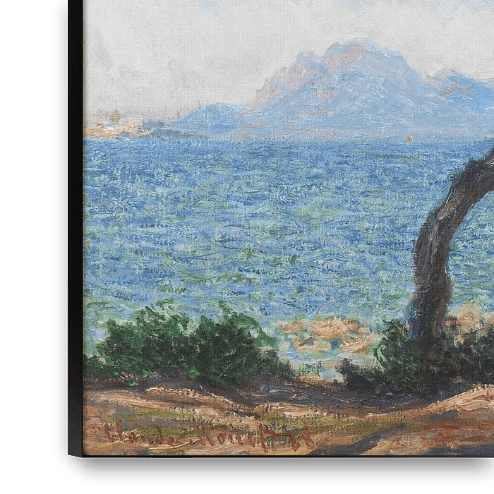 Antibes, Claude Monet (1888) Au début du printemps 1888, Monet a passé plusieurs mois à peindre à Antibes, dans le sud de la France. Il a dû faire face à des conditions météorologiques changeantes, mais s'est efforcé de rendre les effets éphémères de la lumière et du vent. Ici, Monet a capturé l'intensité de la lumière et des couleurs méditerranéennes en utilisant des couleurs fortement contrastées. Il écrit : "Ce que je rapporterai d'ici, ce sera la douceur même, le blanc, le rose et le bleu, tous enveloppés dans cet air magique".