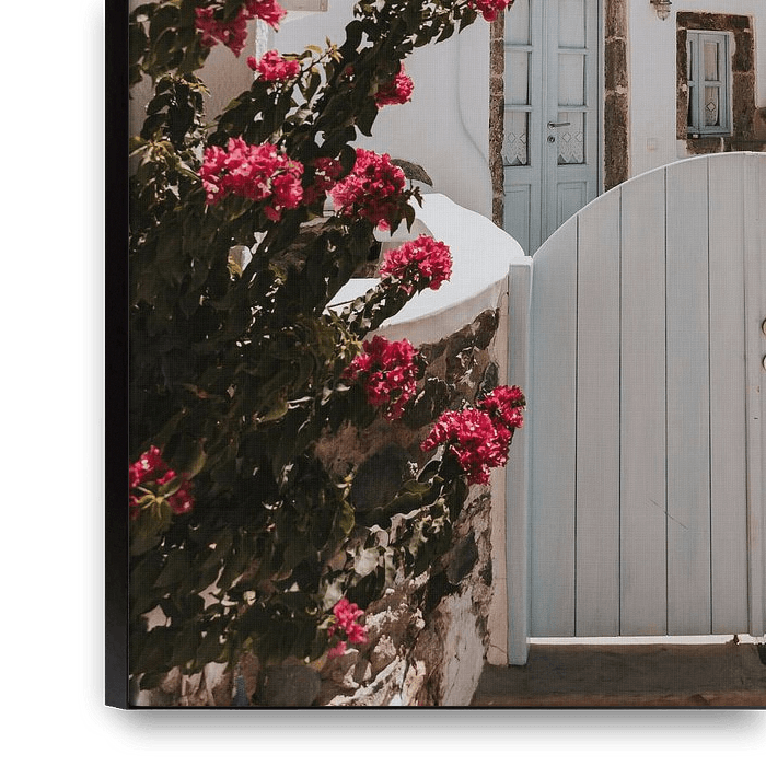 Achetez cette œuvre d'art florale Appartement à Oia, Santorin Grèce par Manon Visser sur toile, aluminium, ArtFrame ou photographie (encadrée), impression d'art en haute qualité et tout format.