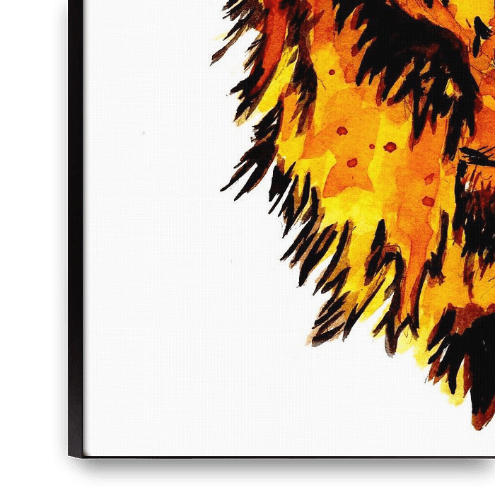 Aquarelle traditionnelle représentant un grand lion mâle, dont la moitié du visage est visible.