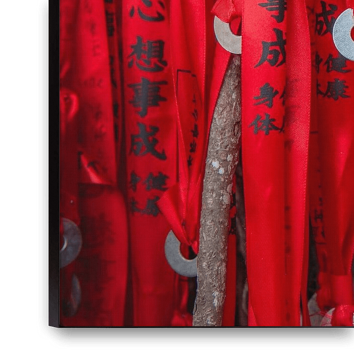 Arbre à souhaits Sekinchan en Malaisie rempli de rubans rouges sur lesquels sont inscrits les souhaits. Ils sont jetés dans l'arbre.