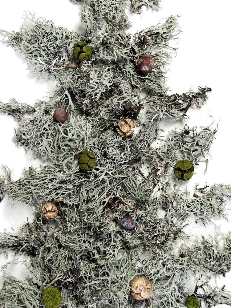 Un sapin de Noël en mousse et une décoration naturelle en vert, brun et or vieilli. Un style pour Noël qui s'intègre bien dans un intérieur rural.