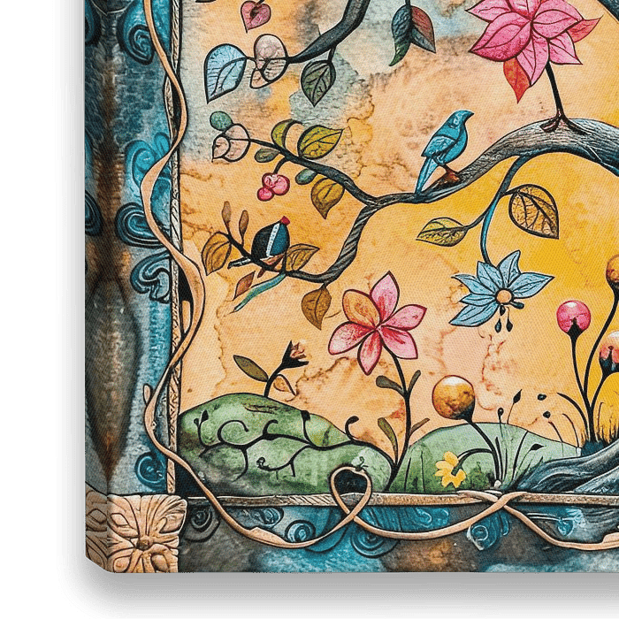 L'image représente l'arbre de vie, un symbole puissant que l'on retrouve dans de nombreuses cultures et mythes et qui incarne les thèmes de la croissance, de la connexion et du renouveau. L'arbre occupe une place centrale sur la toile, avec des branches qui s'entrelacent dans l'image de manière complexe. Chaque branche est ornée de…