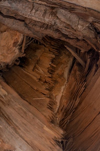 Cette photo représente l'endroit où l'arbre s'est fendu et est tombé, de sorte que la structure du bois est multiple.